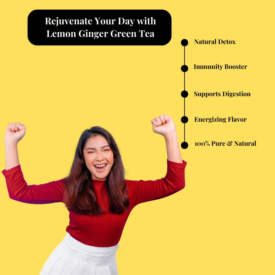 Lemon Ginger Green Tea Digestive Aid with Vitamin C Natural Flavor & Fresh Herbs 25 Tea Bags Pack of 2