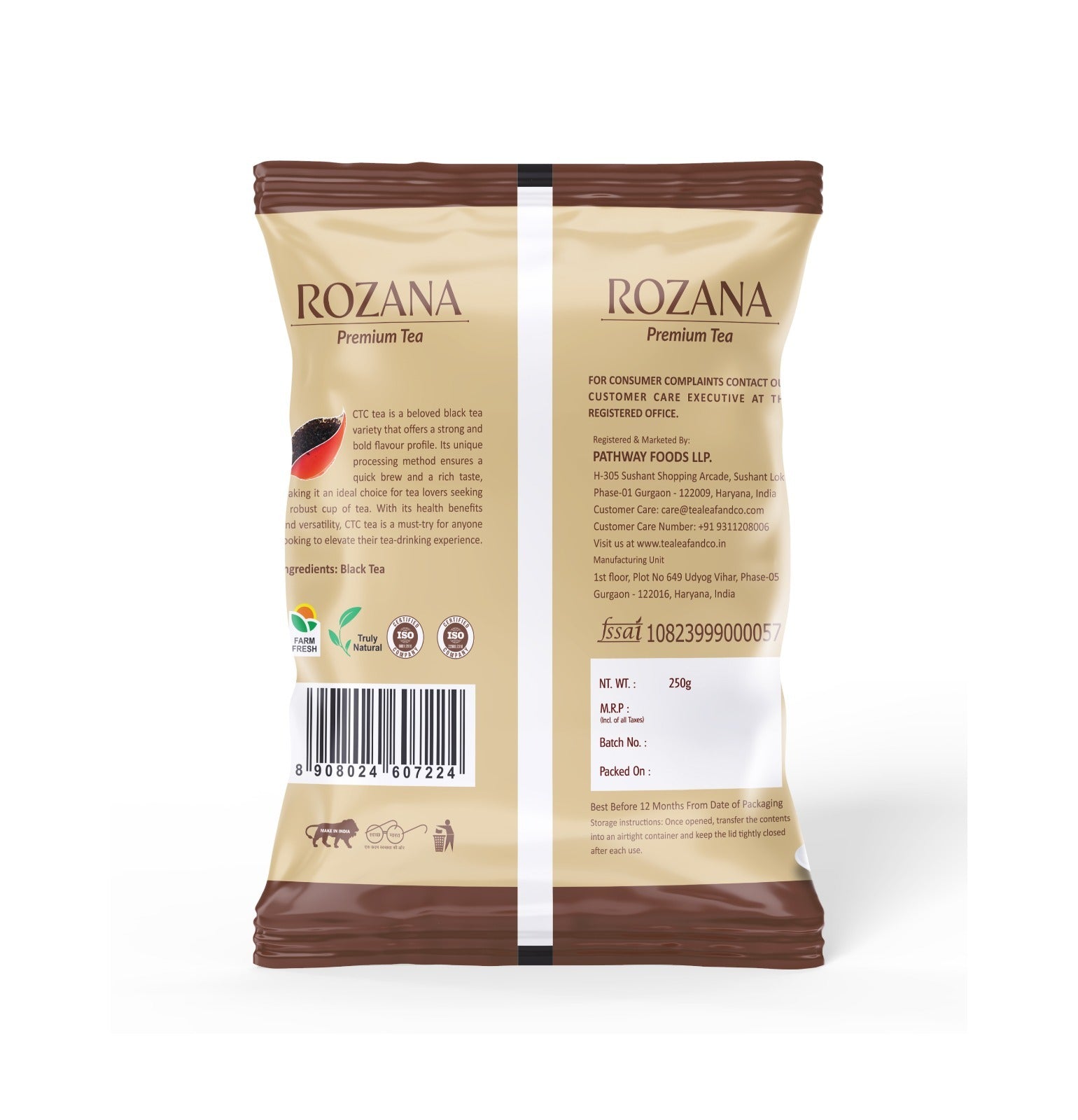 Tea Leaf & Co. Rozana Premium CTC Black Tea Strong & Bold Flavor Fresh Loose Leaf for a Robust Morning Energy Boost 250g Pack